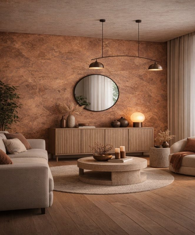 Cat dekoratif jenis ini sangat relevan dengan tren “calm interior” yang semakin digemari di 2026.